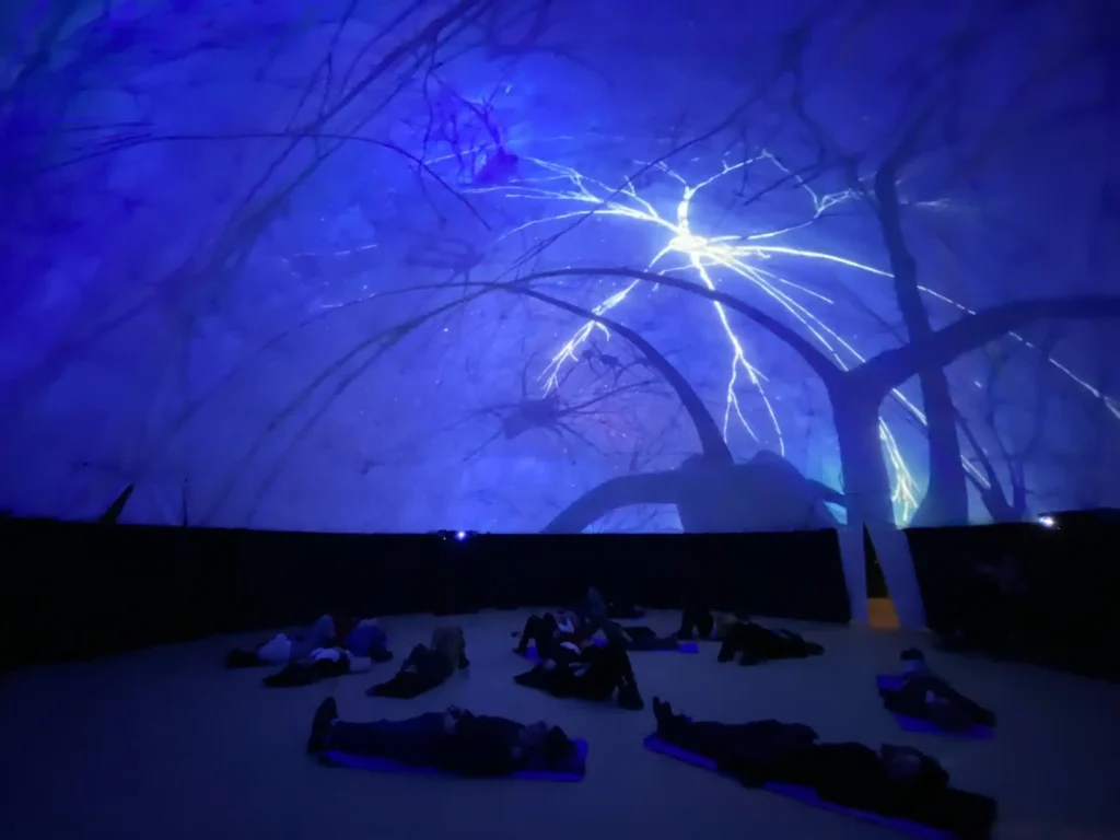 True to its name, Big Art’s team is massive: it brings together engineers, fabricators, programmers, artists, and long-time creative collaborators. Building the Dome is physically demanding, especially in winter conditions, while programming requires designing for a fully immersive, 360-degree environment. But it is absolutely worth it, according to Magnuson.