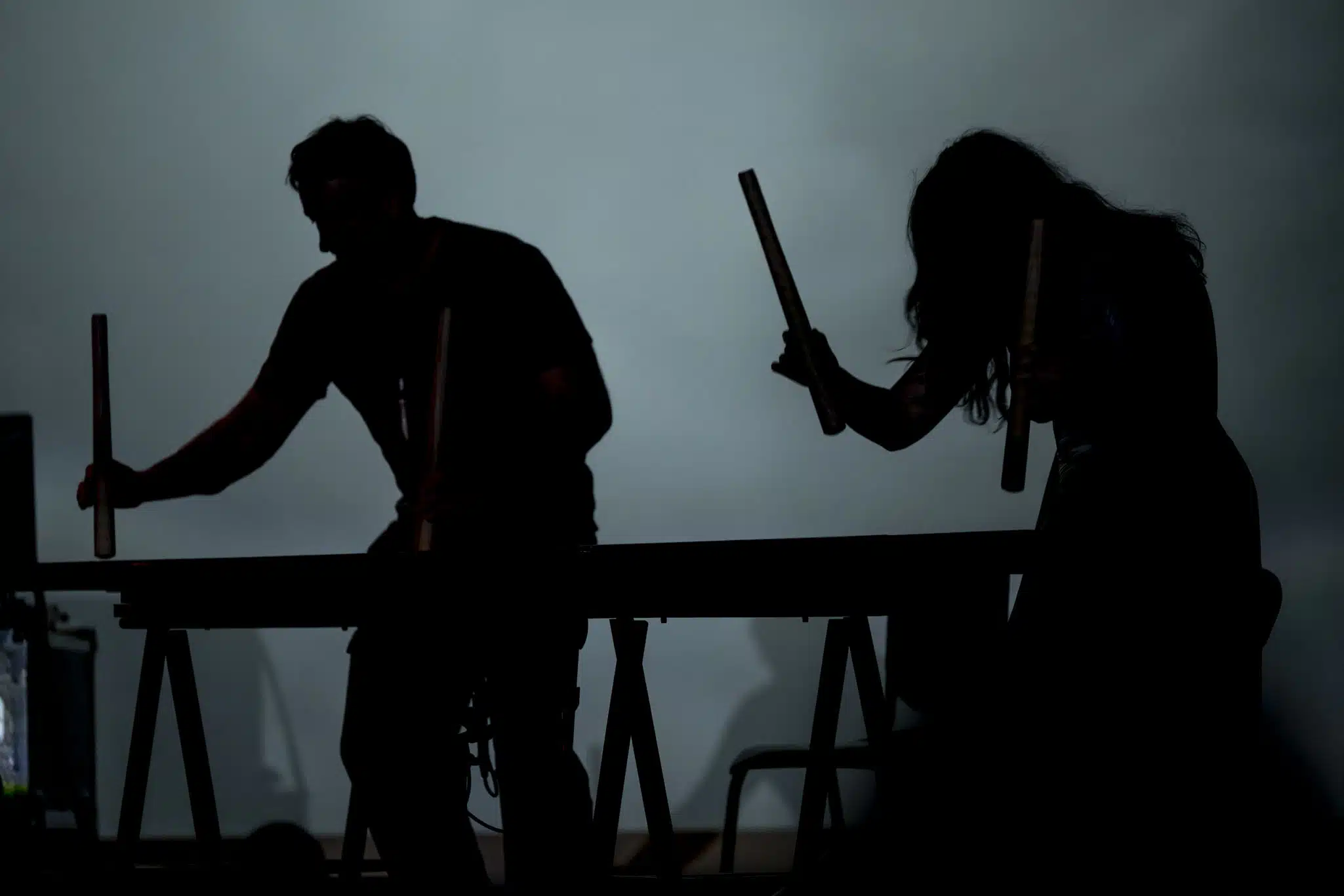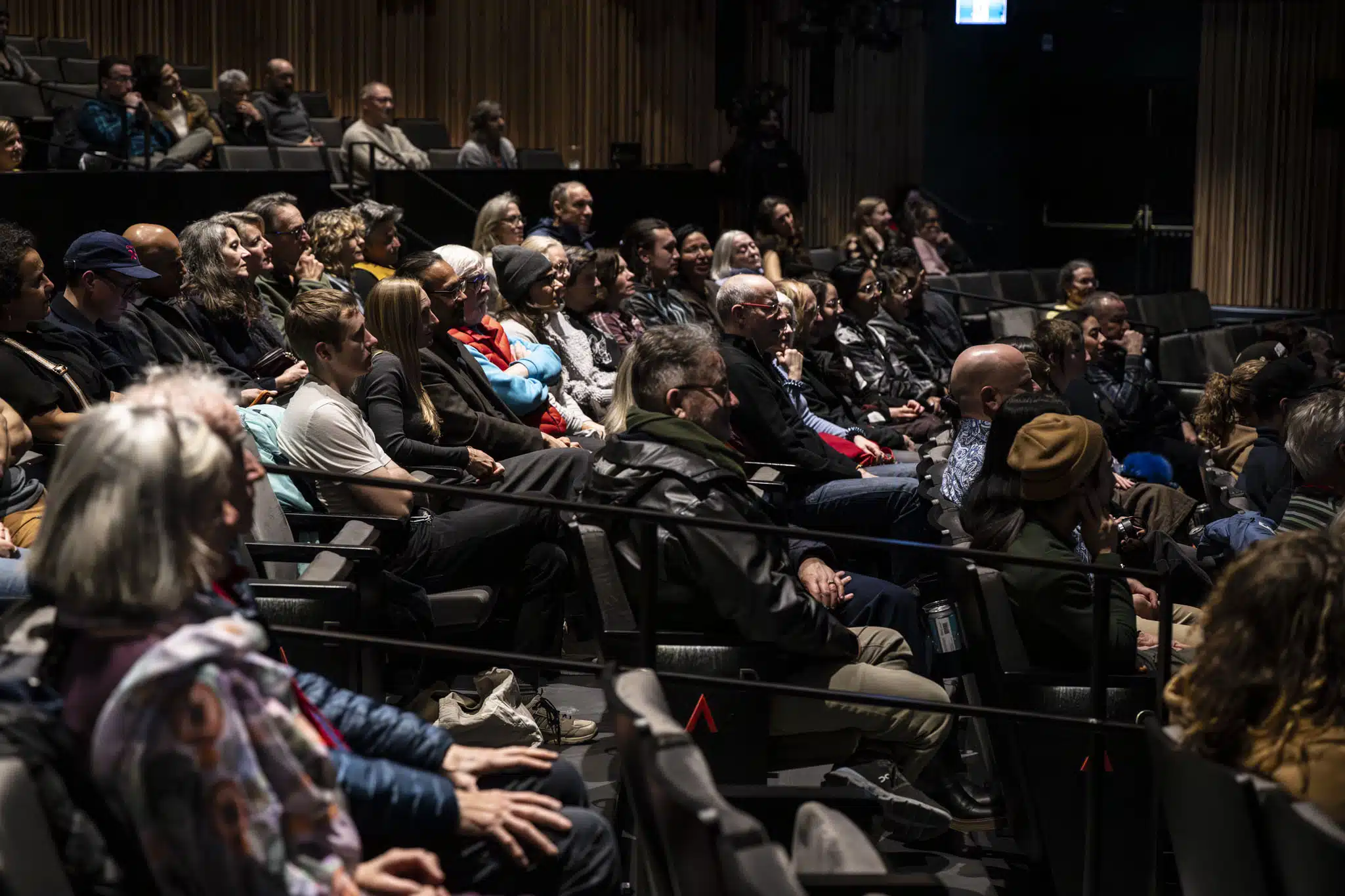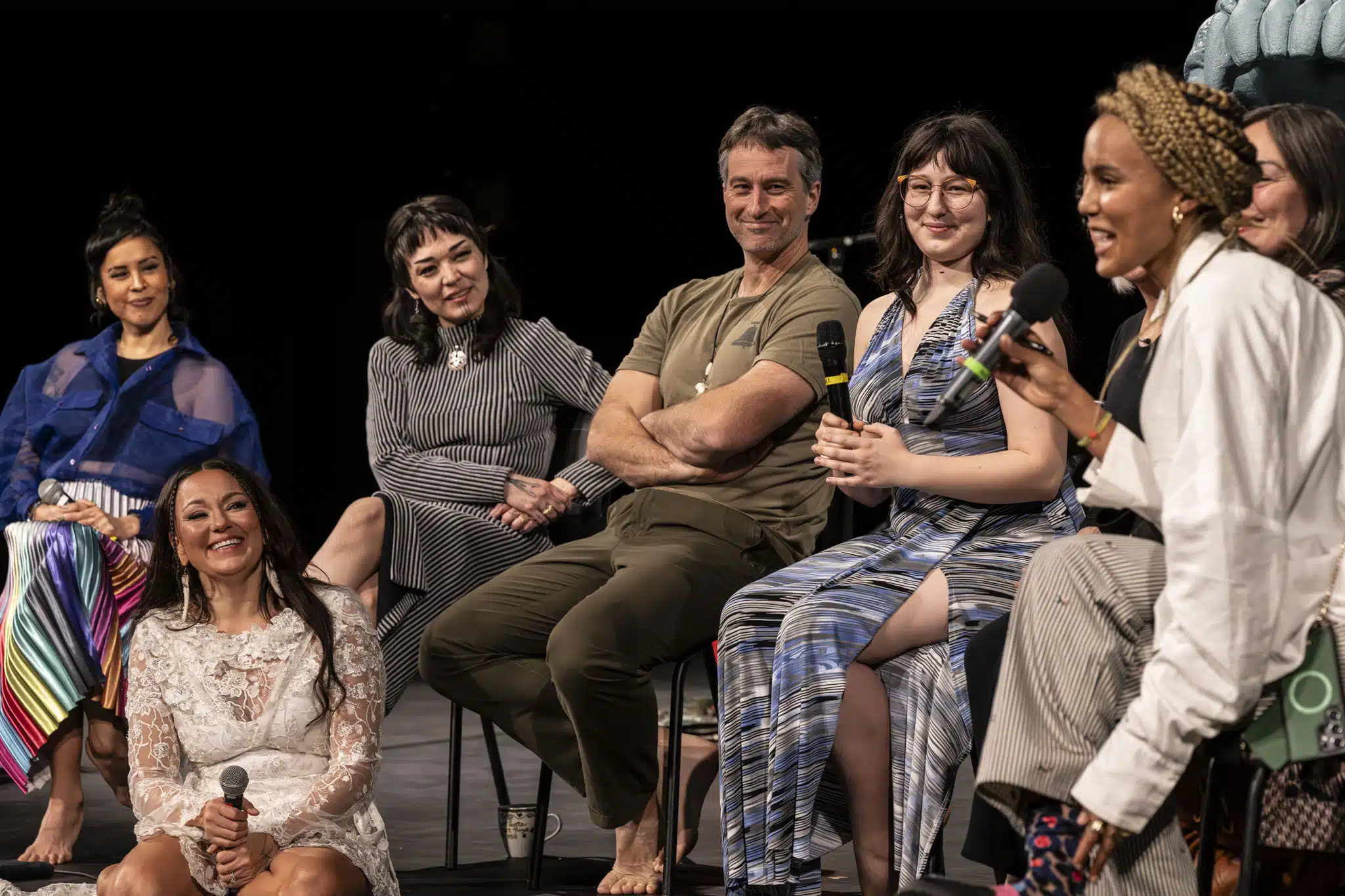Stepping into the theatre, it was hard not to feel the walls between performer and audience break down. The “open rehearsal” format feels inherently intimate, as does the Jenny Belzberg Theatre, which seemed to swell and shift its walls in relation to the primordial sounds onstage. After a 75-ish minute performance, a lively Q&A hosted by Schaal followed with the creative team, which includes throat-singing duo Silla (Cynthia Pitsiulak and Charlotte Qamaniq) and various family members of Tagaq.
