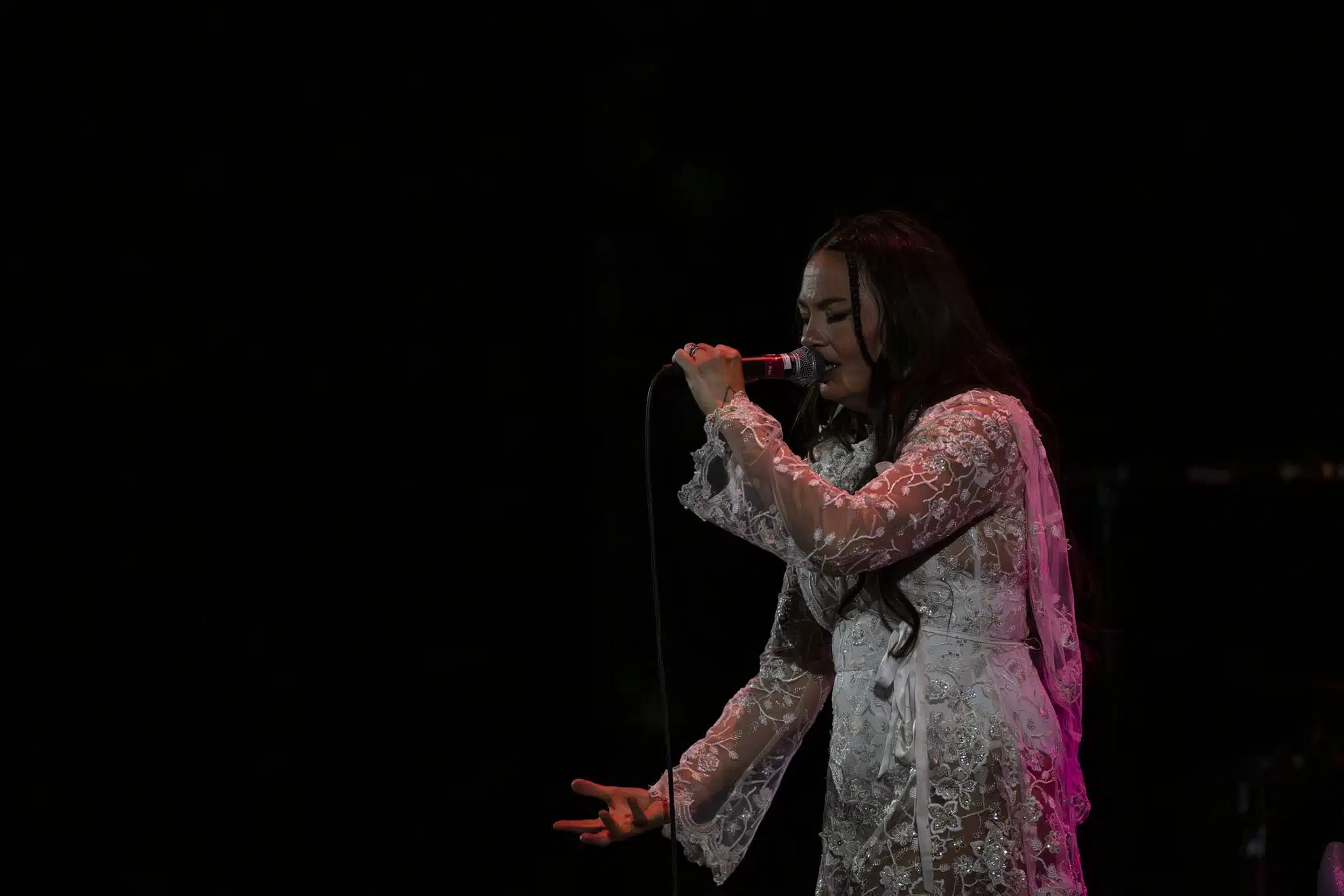 People got one such chance on December 16, 2025, when Canadian Inuk throat singer Tanya Tagaq opened a rehearsal for the show Split Tooth: Saputjiji to the public at the Banff Centre for Arts and Creativity. This show — which is set to formally open at Vancouver’s PuSh International Performing Arts Festival on February 5, 2025 — is an abstract mix of visuals, live music, and throat singing that pulls heavily from Tagaq’s book Split Tooth and her new album, Saputjij. Directed by boundary-breaking opera and theatre artist Kaneza Schaal, this show merges Tagaq’s vocal landscapes with staging that blurs “music and memory, landscape and breath, body and cosmos.”